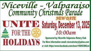 Saturday, December 13, 2025 - The Niceville Valparaiso Christmas Parade, 10am. Theme: Unite for the Holidays. Parade Hosted & Sponsored ...