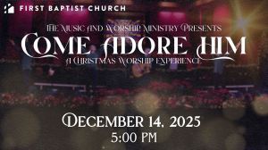 Our First Baptist Music Ministry will deliver a beautiful Christmas Worship Experience on December 14. “Come Adore Him” will be ...