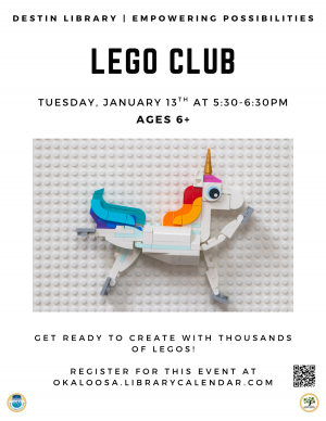 Join us at the Destin Library on Tuesday, January 13th from 5:30–6:30PM for an evening of creativity and fun! This ...
