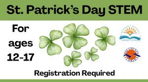 Learn about Irish culture and do some green-themed STEM activities! Registration required, call or message our Facebook page to register!