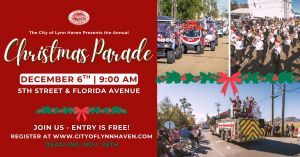 The City of Lynn Haven’s Annual Christmas Parade will be on Saturday, December 6th at 9:00 AM.